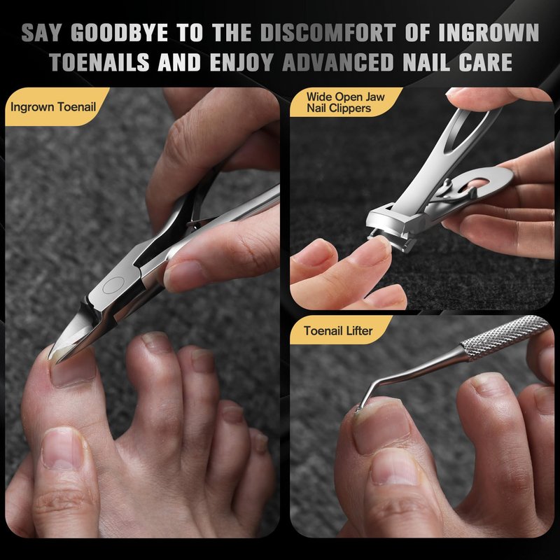 - Comprehensive 4PCS Ingrown Toenail Kit - The FERYES Ingrown Toenail Kit includes everything you need for effective toenail care: 1 straight edge toenail clipper, 1 wide open jaw nail clipper for thick nails, 1 thick toenail file, and 1 toenail lifter. This all-in-one set provides a complete solution for managing and Care thick and ingrown toenails.