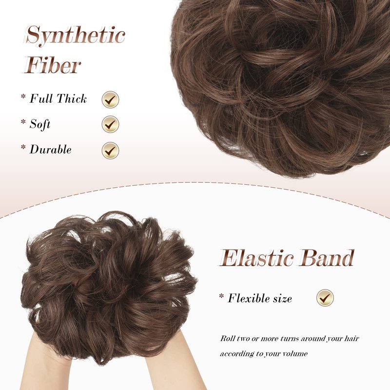 - 【FUNCTION】Messy hair bun weighs 1.3 oz/pcs, perfect for adding volume and fullness to a updo or a ponytail. This eye-catching hairpiece bun is very soft and natural, well blending with your own hair.