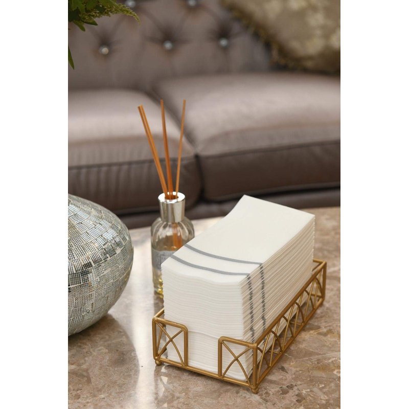 Each of our disposable guest towels have been made using a premium-quality and exquisitely soft linen-like fabric. This fabric materials gives our silver wedding napkins a nearly authentic linen feeling and texture, providing your guests with a sense of outstanding comfort luxury whenever they use one. Plus, all of the disposable dinner napkins in this set feature a gorgeously regal-themed design on their lower halves, printed on the front and back of every decorative hand towel. This royal design is available in your choice of gold and silver, letting you use these decorative disposable napkins as the perfect final touch to your formal event’s décor.