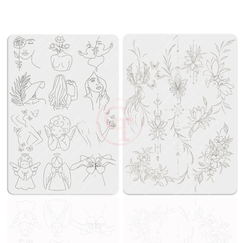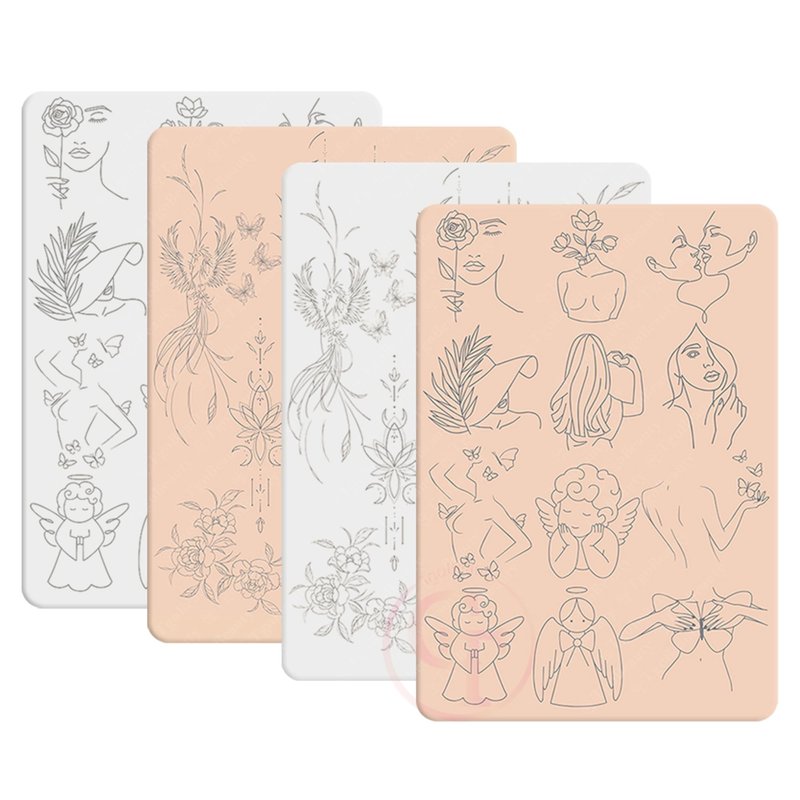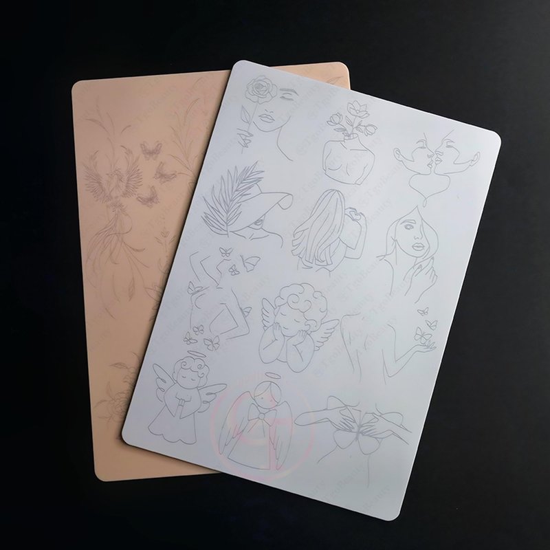 The white skin with light gray outline. fine line tattoo practice pad for training to improve the tattoo skills.