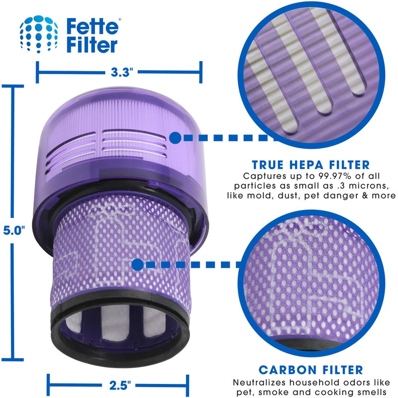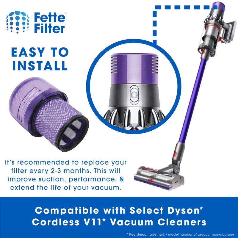 Fette Filter - Vacuum Filter Compatible with Dyson V11 (Pack of 4) Compatible with Dyson Cordless Vacuum V11, Dyson V11 Torque Drive Vacuum and Dyson V11 Animal.Compare to Part # 970013-02 Packing May Vary!! This is not a Dyson OEM product. The Dyson brand names and logos are the registered trademarks of their respective owners. Any use of the Dyson brand name or model designation for this product is made solely for purposes of demonstrating compatibility.