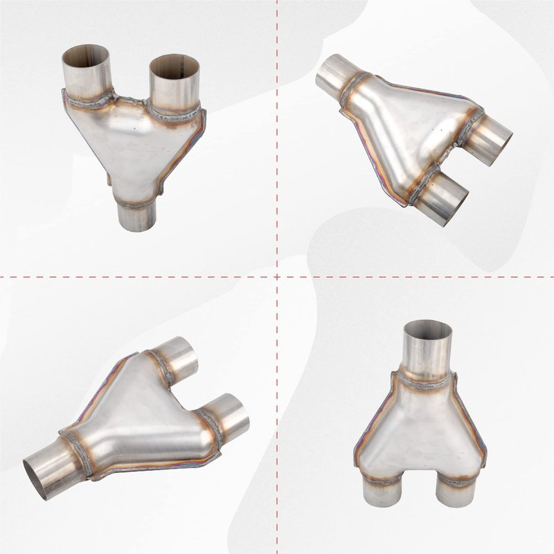 FGJQEFG T409 Stainless Steel Y Pipe 2.25'' Inch ID Single to 2'' Inch ID Dual Stamped Exhaust Adapter Connector, Overall Length: Approx. 10", Universal