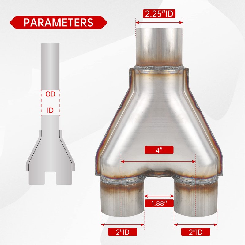 - Size: 2.25" Single to 2" Dual