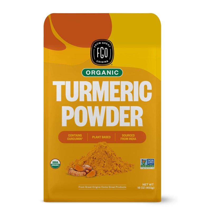 FGO Organic Turmeric Powder w/Curcumin, 100% Raw from India, 16oz, Packaging May Vary (Pack of 1)