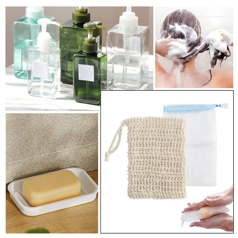- 【Easy foaming】Exfoliating mesh soap saver bags made of high-quality PE material and natural sisal, can help cleaning products quickly rub out a rich and delicate foam like cotton, are perfect for cleaning or massaging the skin. Protect your skin from direct contact with cleansing products, and let the cleansing products give full play to their cleansing power to make your skin more delicate and smooth.