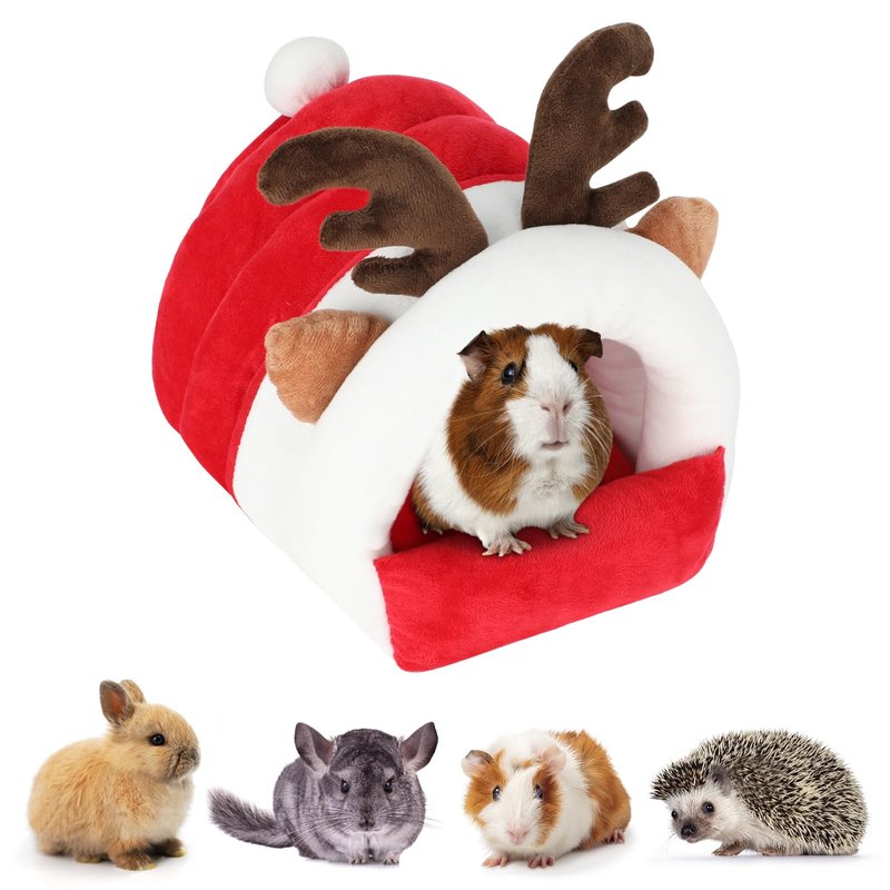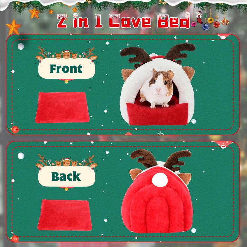 FHTONGE Guinea Pig Bed Cave for Winter, Christmas Guinea Pig Hideout House Rreindeer Shap, Warm Rat Hideaway Cozy Chinchilla Bed for Dwarf Rabbit Ferret Hedgehog Hamster Small Animal Hide