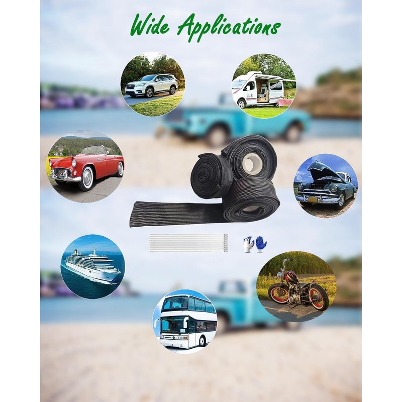 - 🚌【More Application】: This fiberglass heat wire shield sleeve is designed to fit most motor vehicle engines and is easy to install, making it a versatile addition to any engine bay. Special for car wire loom brake line cable protection, and suitable for cars, trucks, ships, ATVs, motorcycles and so on.