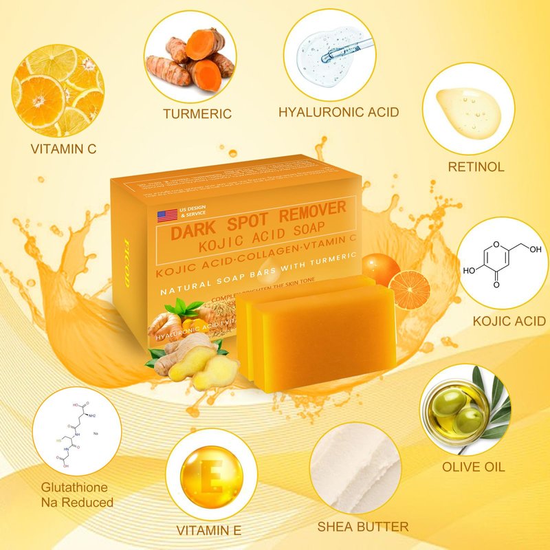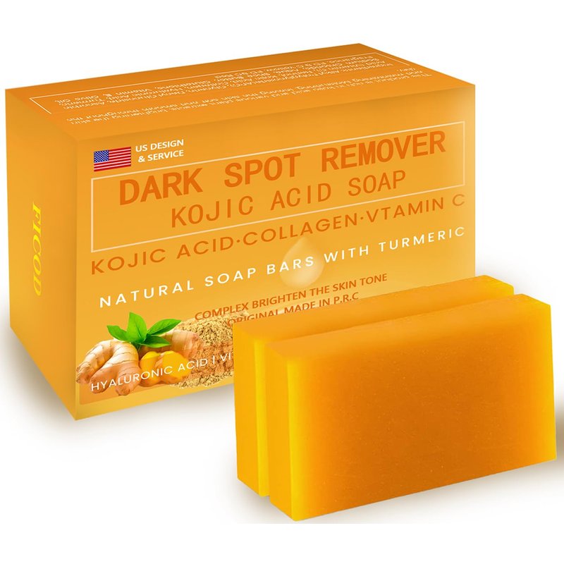 Ficod Kojic-Acid-Soap, 2Pack Turmeric Soap for Dark spots with Vitamin C, Vitamin E,Retinol, Collagen, Turmeric - Original,Olive Oil,Hyaluronic Acid for Reduces Dark Spots
