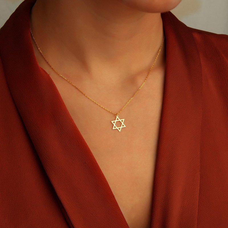 - 【Gold Necklace Non Tarnish Design】:The Great Satellite (the six-pointed star, also known as the David's Shield, the Solomon Seal, and the Jewish Star). The six-pointed star is the symbol of the goddess, meaning the meaning of guardianship and protection. Inspired and fabulously detailed, Great design and quality, love this item very unusual fun item.