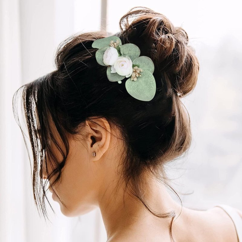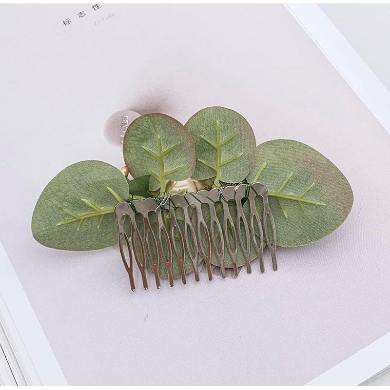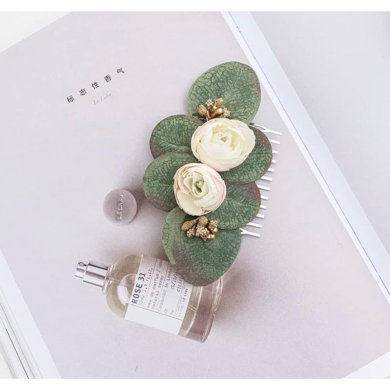 FIDDY898 Wedding Bridal Comb Camellia Hair Comb Ranunculus Green leaf Floral Clip Headpiece Head-comb