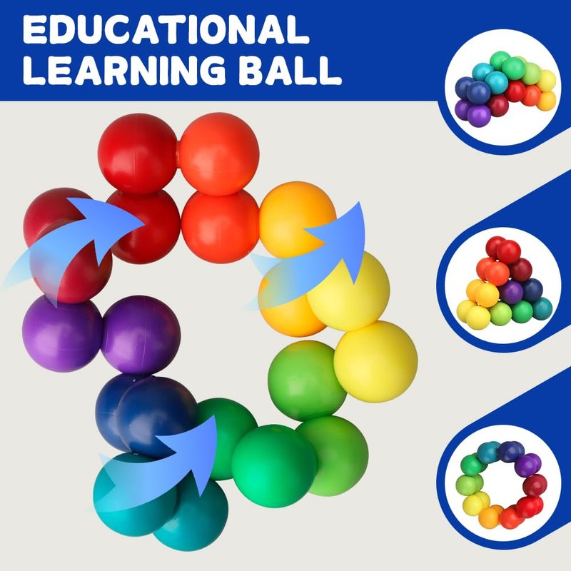 - Sensory Rainbow Ball: Each ball is connected to two others, creating a flexible and dynamic structure. This innovative design allows the educational ball to transform into various shapes and forms by simply twisting and turning the connected balls.