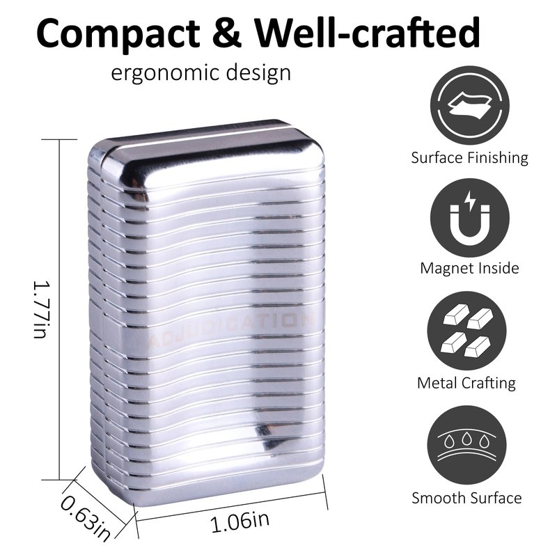 - Metal Fidget Slider: This adult fidget toy is made from high-quality metal. Each detail of the slider is precisely crafted, with a smooth, refined surface that resists fingerprints (except for the polished silver color, which may feel a bit slick; if this is a concern, please consider other colors). The fidget slider offers a great feel, with quick clicks and a secure grip. The brick slider toy has a unique back-contact design to help relieve stress and anxiety.