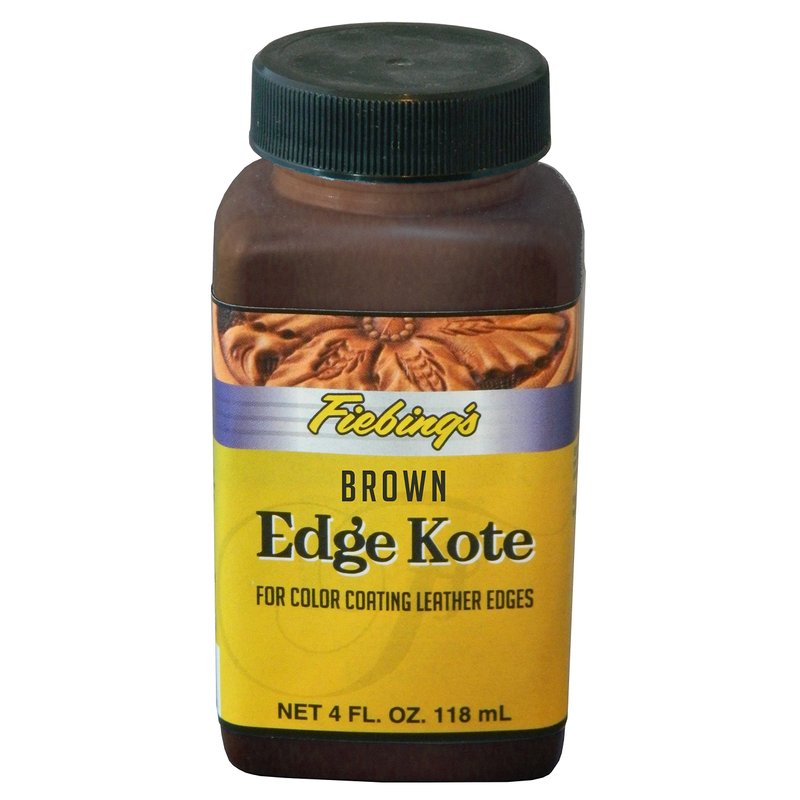 Fiebing’s Edge Kote Leather Paint comes in a 4 ounce bottle and offers a professional touch to leather edges, providing a clean, polished appearance. Ideal for natural edges on all leather craft including shoes, furniture, purses, and couches, this water-resistant formula delivers a deep semi-gloss finish while still remaining flexible. Customize your application with the ability to thin Edge Kote with water for optimal coverage and protection. Depending on the desired depth of color and coverage, you can apply additional coats of Edge Kote. Allow each coat to dry completely before applying the next one.