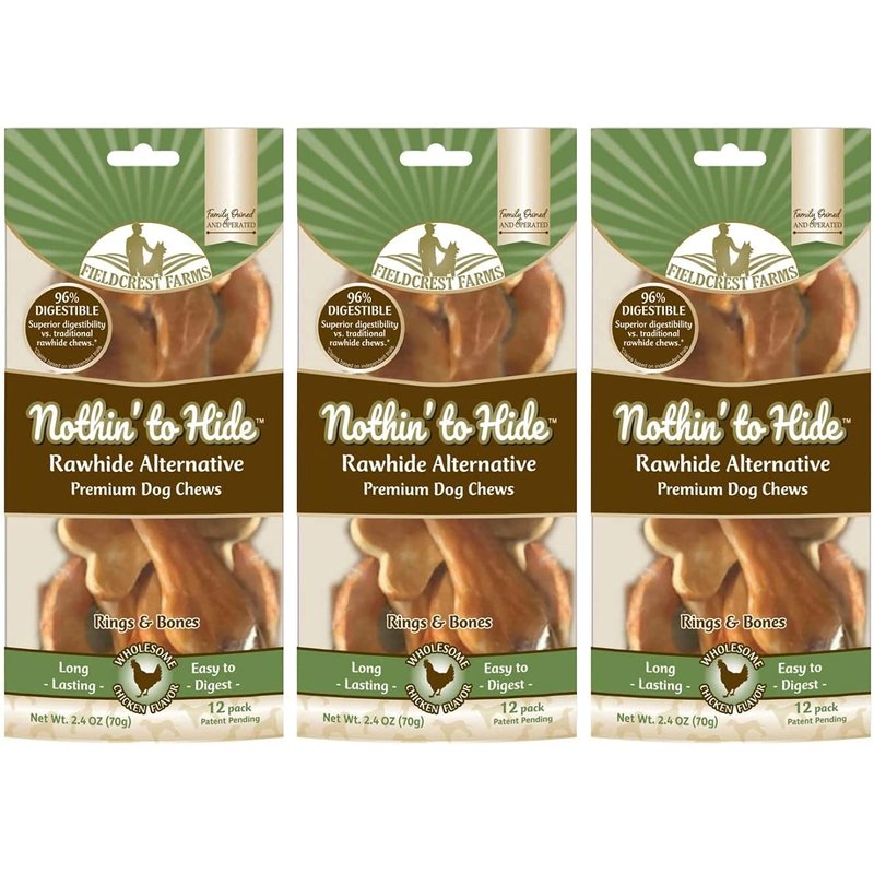Fieldcrest Farms 3 Pack of Nothin' to Hide Chicken Rings and Bones, 12 Count Each, Rawhide Alternative Dog Chews
