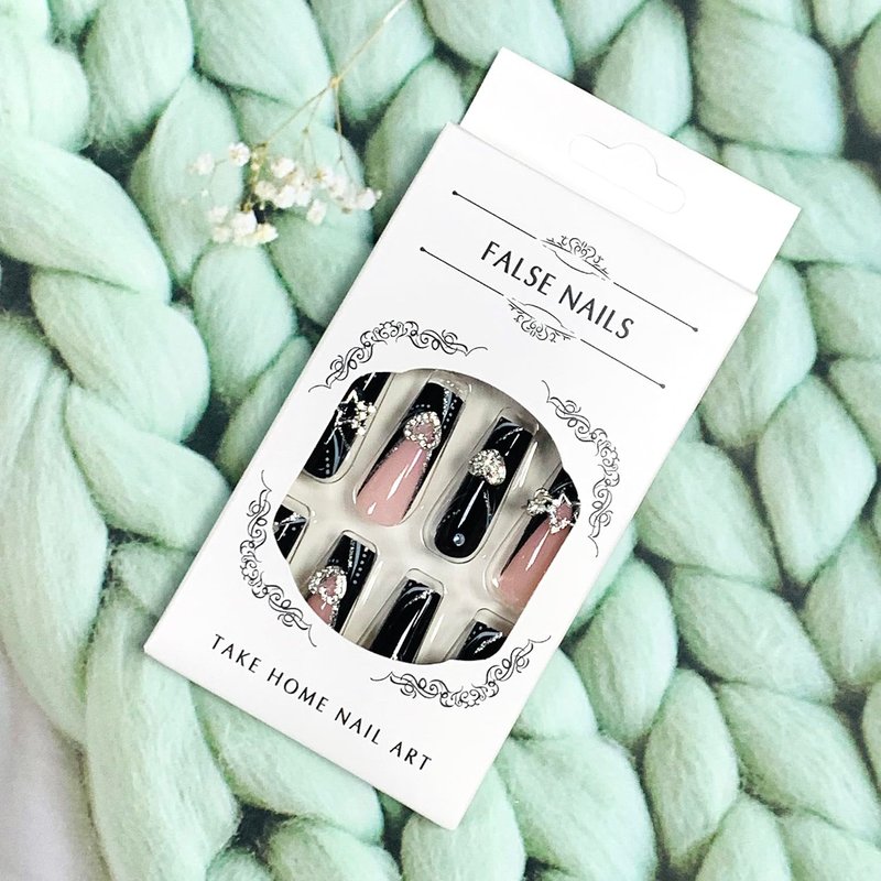 - 【Artificial Fake Nails】Long coffin false rhinestone nails is made of high quality acrylic ABS material, they are more flexible will not harm your hands.