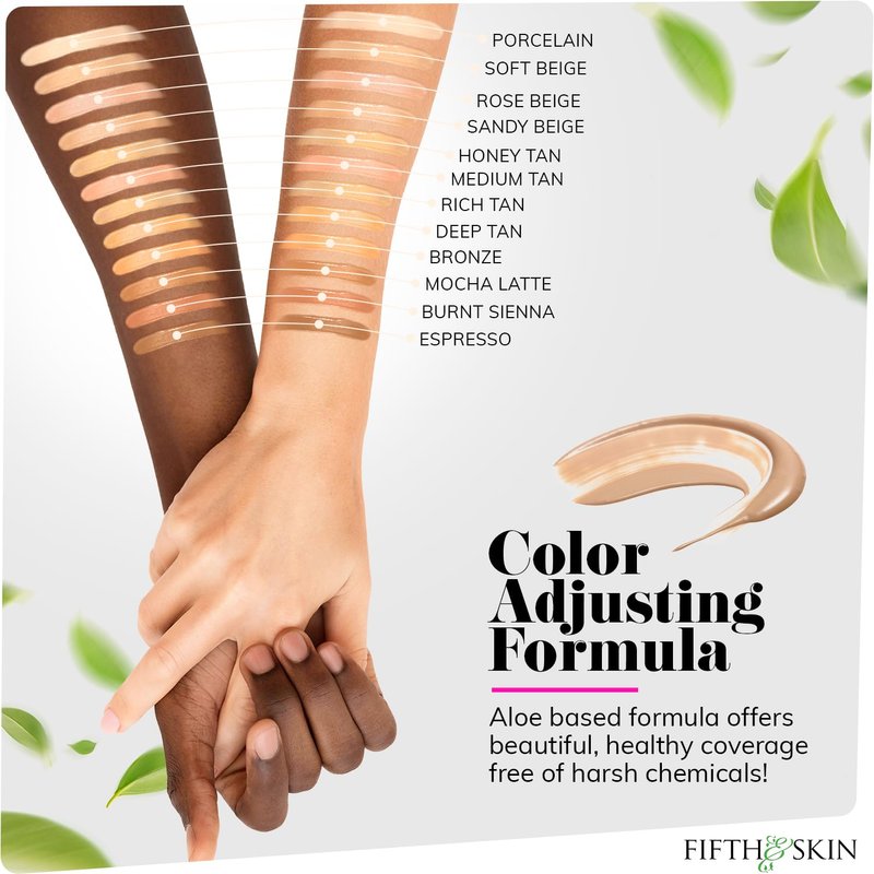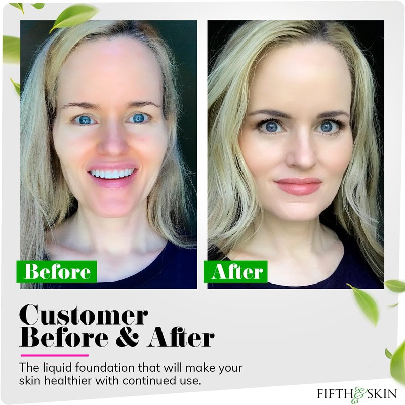 Fifth & Skin: Better’n Ur Skin Liquid Foundation (PORCELAIN) - Natural, Organic, Vegan, Cruelty-Free - Gluten-Free Beauty with Buildable Coverage and Palm-Free Luxury - 1 oz