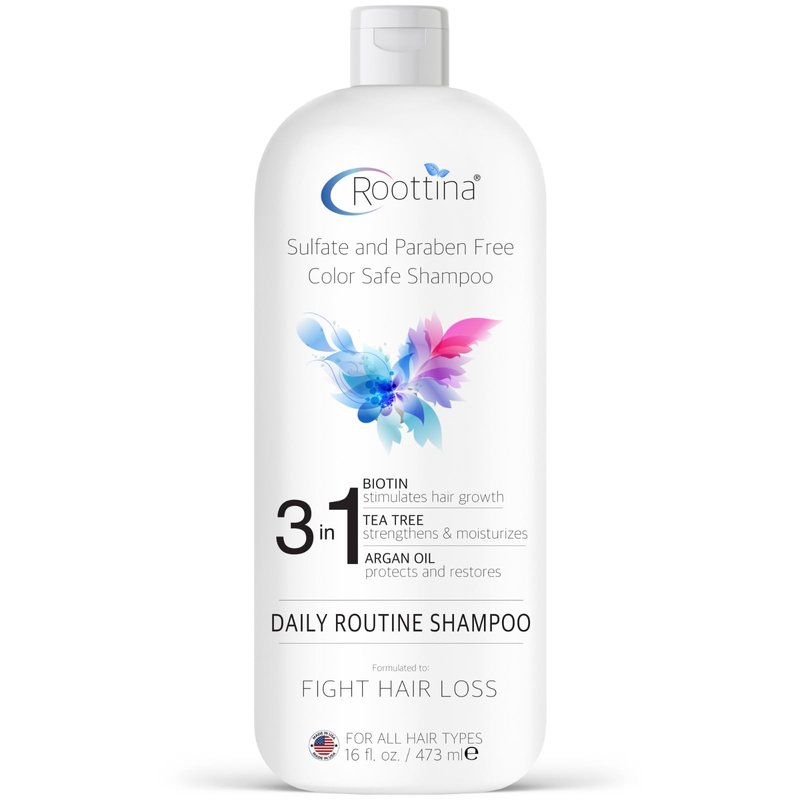 - ADVANCED HAIR LOSS SUPPORT -- Roottina Daily Routine Shampoo incorporates cutting-edge DHT blockers to effectively combat hair loss. Enriched with Biotin, Tea Tree, Argan Oil, and other essential oils.