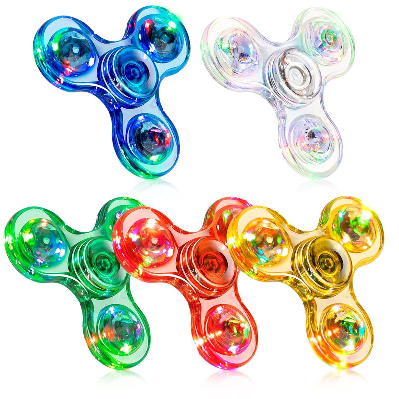 - 【MULTICOLOR LIGHT UP FIDGET SPINNERS】5 Pack light up led fidget spinners for children! Each spinner comes in its own individual box and features different colors including red, green, yellow, blue and white. Their portable size makes them easy to carry anywhere you go. These glow in the dark party favors will flash bright lights and patterns, making them absolutely eye-catching!