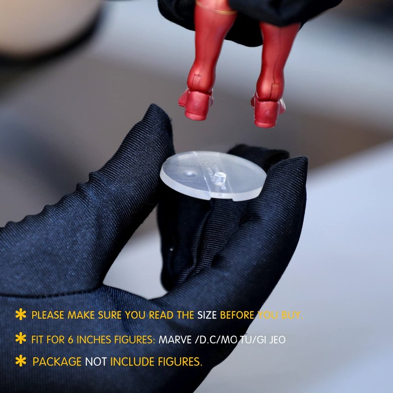 - PACKAGE INCLUDES - Comes with 100pcs clear ROUND action figure stands, sufficient quantity support you to use. Important Tips: 1, PLEASE confirm the size before buying; 2, PLEASE NOTE that the package does not include figure.