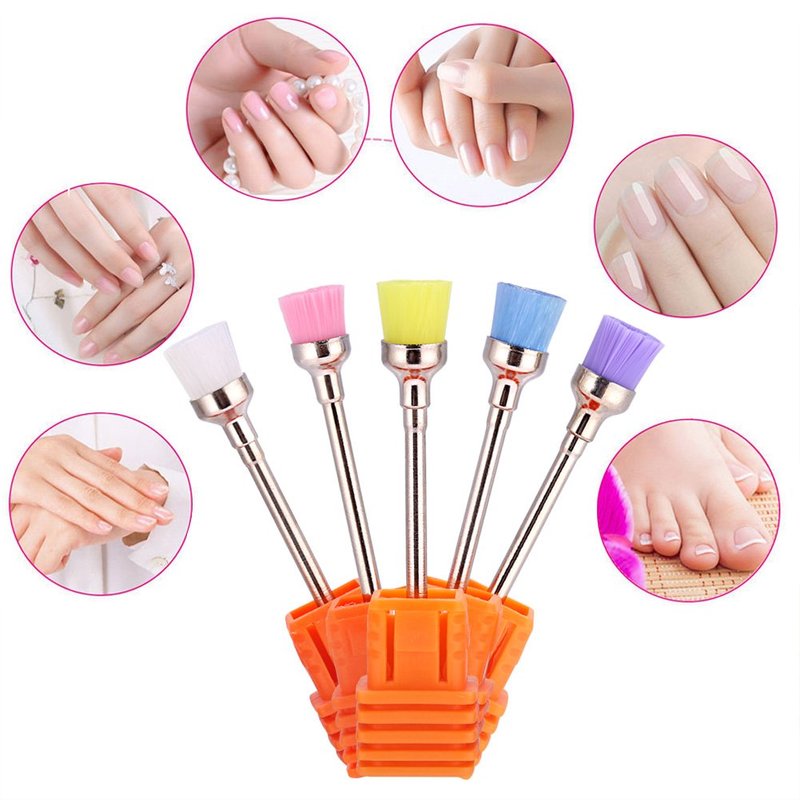 FILFEEL 5pcs Nail Dust Cleaning Brush, Nail Polish Grind Drill Clean Brush Head for Electric Nail Drill Machine Nail Dust Remover Accessory Tool