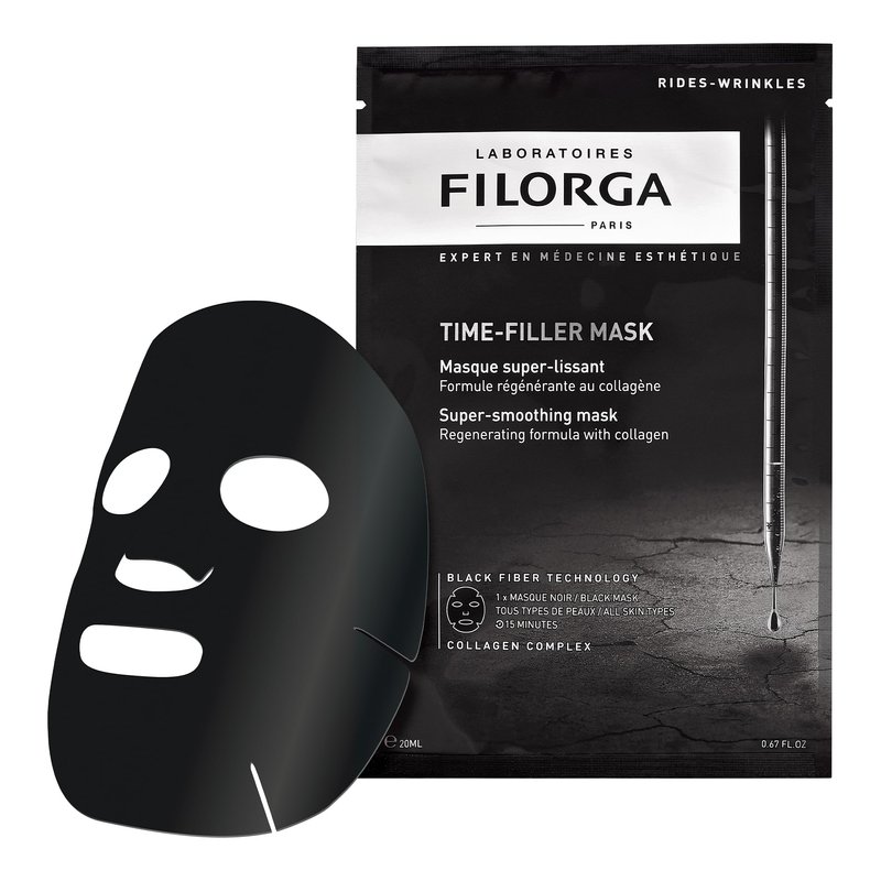 Filorga Time-Filler Super Smoothing Face Mask, Sheet Mask Soaked in Renewing Serum with Collagen and Polysaccharides For Visibly Smoother Skin in 15 Minutes, Hydrating Facial Treatment, .67 fl. oz.