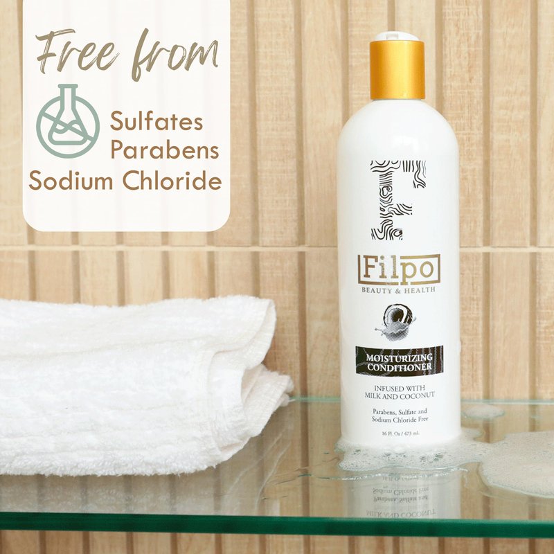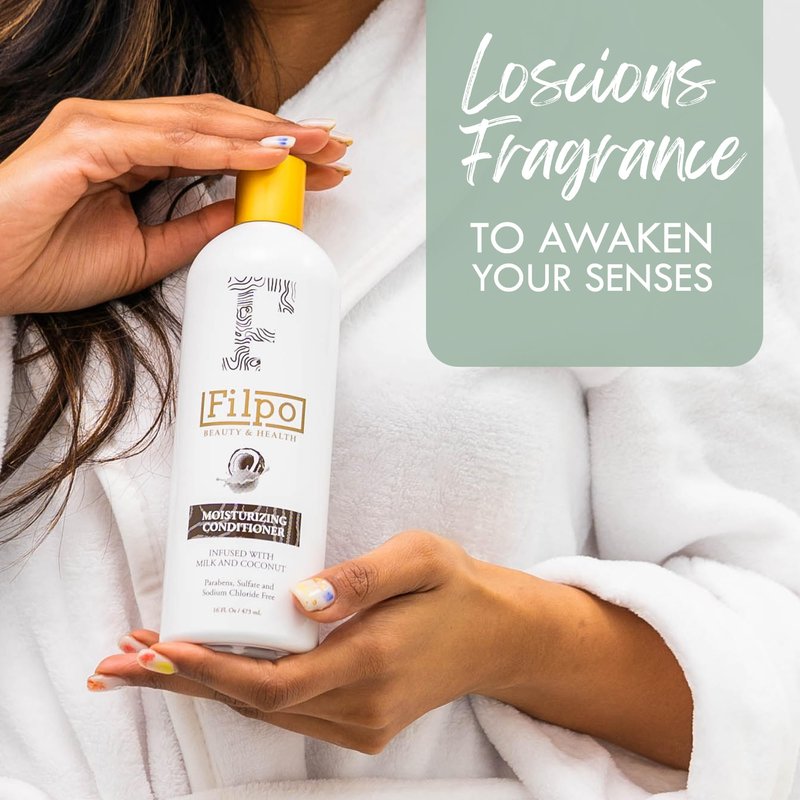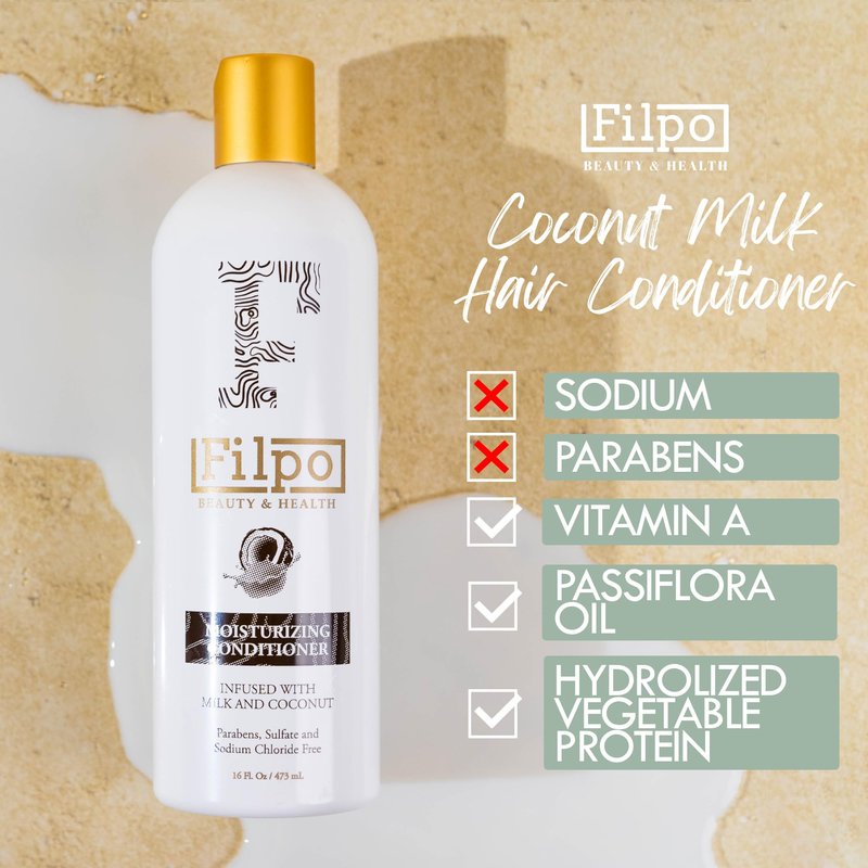 - INCREDIBLE MOISTURE & SOFTNESS: Do you long for gorgeous, touchably soft hair? Quench your dry, damaged locks with our fabulous Filpo moisturizing conditioner. Infused with milk and coconut oil, we've enriched it with anti-oxidant argan oil and hero ingredient buriti oil for lustrous, luxurious hair!