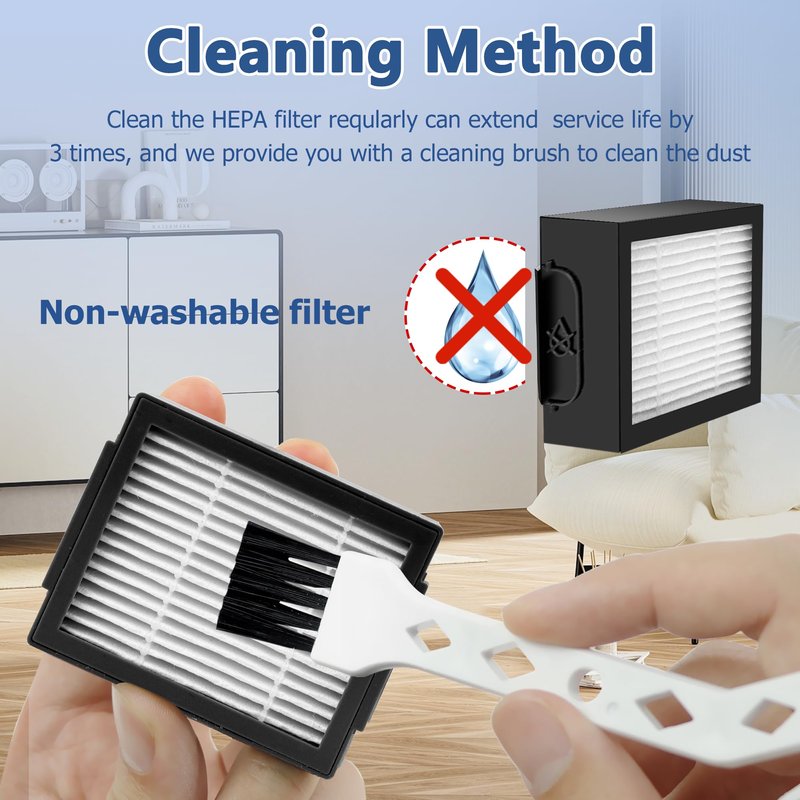 - 𝗖𝗢𝗦𝗧-𝗘𝗙𝗙𝗘𝗖𝗧𝗜𝗩𝗘 𝗚𝗢𝗢𝗗𝗦: ① Package includes: 12 × HEPA filter and 1 × cleaning brush, offering a highly cost-effective filter set. ② Easy to replace and disposable, no tools required. ③ Please replace the i7, i3, e5 filter every 2-4 months for optimum cleaning performance, not OEM but comparable in performance. (!!!PLEASE NOTE: Funmit filters replacement for Roomba i7, i3, e5 cannot be washed !!!)