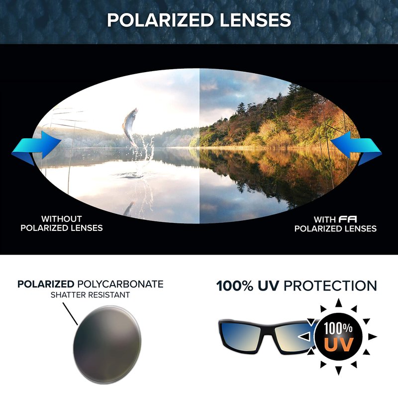 - SAFE LENSES: Made from polycarbonate, these lenses are shatter-proof to protect your eyes from potential danger. These sunglasses will keep your eyes safe while you’re out on the water so you can direct your focus to what’s important; fishing.