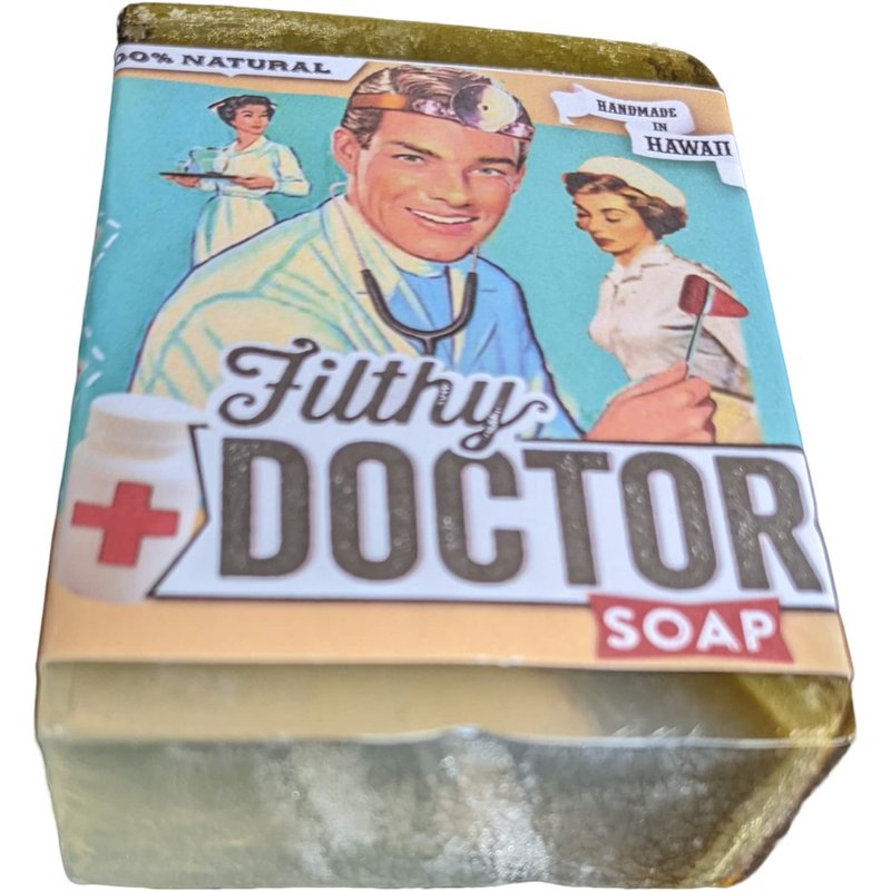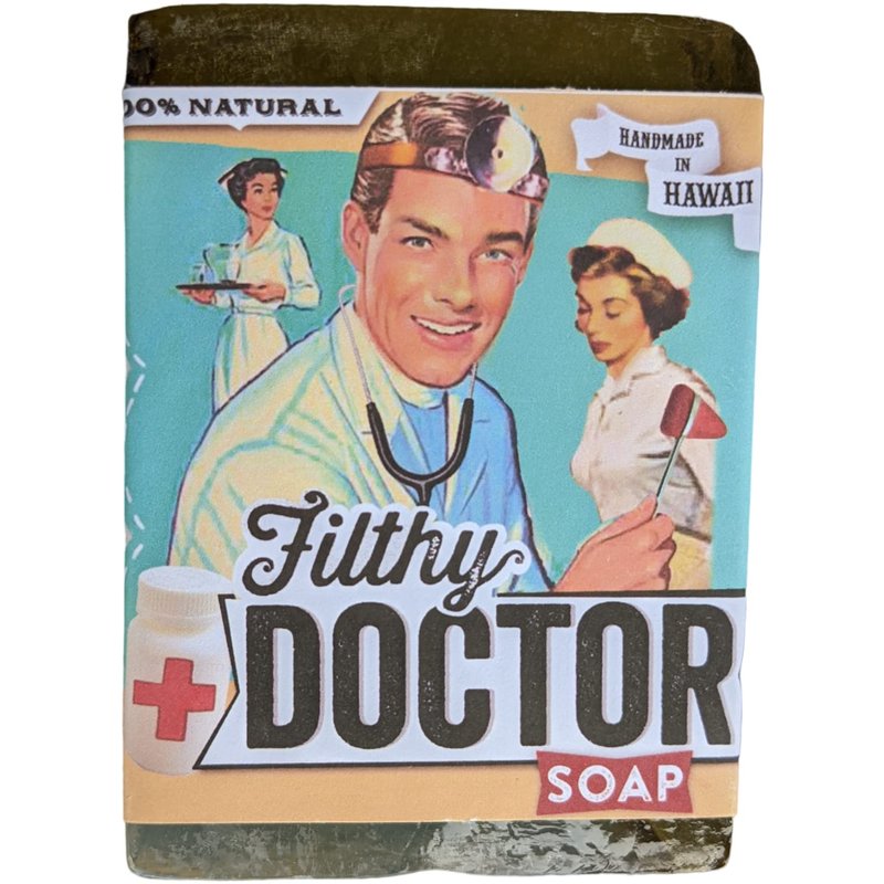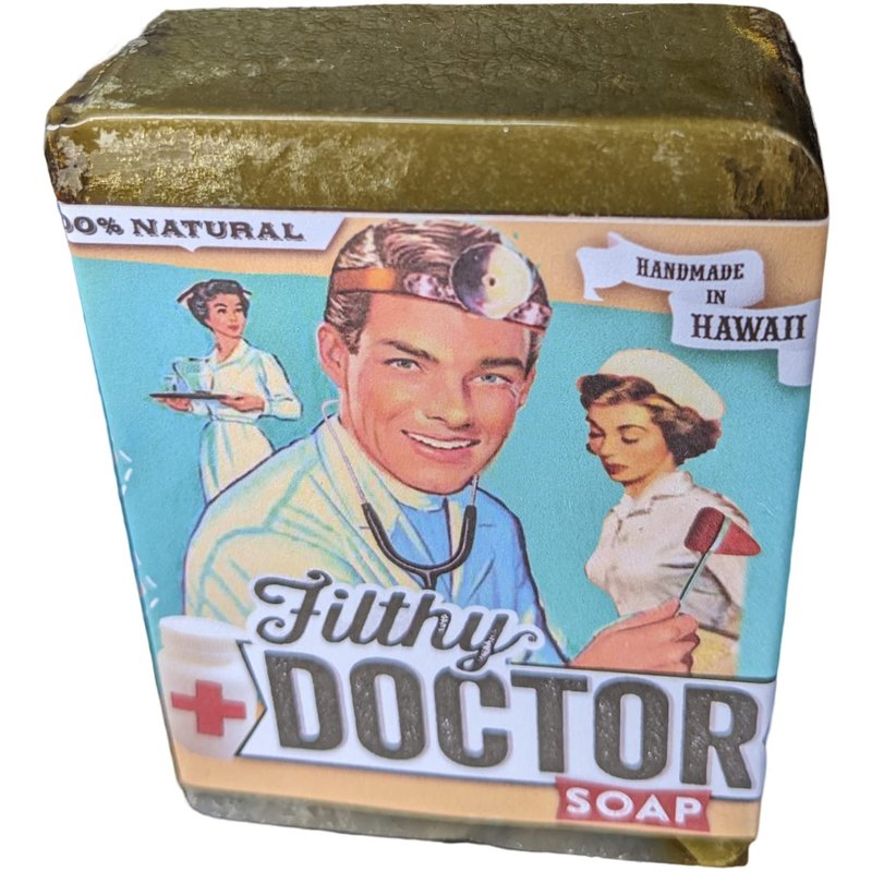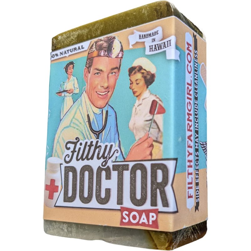 Filthy Doctor all natural large Tea Tree Mint soap bar by Filthy Farmgirl. Hand cut to over 5 ounces. Each bar measures approximately 3.5 x 2.5 x 1 inch. Special ingredients include Eucayptus Essential Oil, Peppermint Essential Oil, Spearmint Essential Oil, Wintergreen Essential Oil, Tea Tree Essential Oil, Clary Sage Essential Oil, Organic Hemp Nut Oil, Organic Peppermint Leaf. Filthy Farmgirl soap bars are 100% Natural, Being good to the earth starts with being good to each other! Healthy, happy (and yes, clean!) people are intrinsically good for the planet. Our soaps put people in touch with the real world through their senses, and enlivens the otherwise mundane ritual of bathing. We have been cooking soaps for ourselves for many years, and now we are happily putting quality bath products into the hands of like minded farmgirls and farmboys like you. Our soap recipes are all 100% natural. Coconut Oil is the main ingredient, Saponified Vegetable Oils (Coconut, Palm, Castor and Safflower), Kosher Veggie Glycerin, highest quality essential oils herbs and spices (Organic when available), Sorbital (natural thickener), Purified Water Sorbitan oleate (natural emulsifier), Sodium hydroxide (natural saponifier). Absolutely no detergents, surfactants, sulfates, artificial scents, colorizers, or petroleum products of any kind. Our Labels are printed on 100% recycled paper. We work hard to make sure every single bar of our soap is made with love and care, and our company is eco-friendly. Soap is not just about getting clean, it’s about loving your body and the earth.