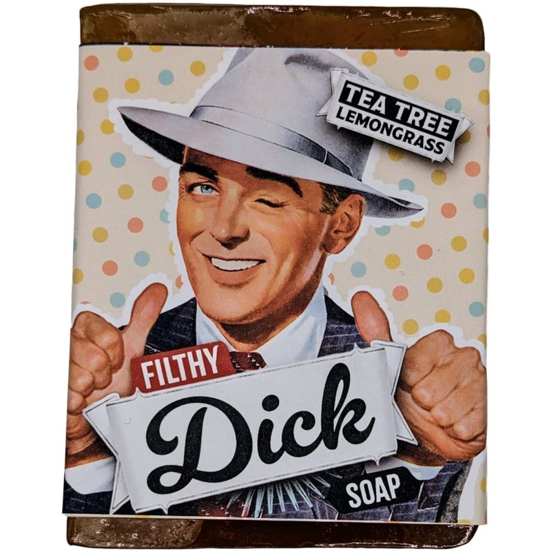 Filthy Farmgirl Filthy Dick all natural large tea tree lemongrass soap bar by Filthy Farmgirl. Each handmade soap bar is cut to over 5 ounces. Each bar soap measures approximately 3.5 x 2.5 x 1 inch. Special ingredients include Tea Tree Essential Oil, Lemongrass Essential Oil, Turmeric Powder. Filthy Farmgirl vegan friendly glycerin soap bars are 100% natural and suitable for the entire body. Being good to the earth starts with being good to each other! Healthy, happy (and yes, clean!) people are intrinsically good for the planet. Our natural soaps put people in touch with the real world through their senses, and enlivens the otherwise mundane ritual of bathing. We have been cooking soaps for ourselves for many years, and now we are happily putting quality bath products into the hands of like minded farmgirls and farmboys like you. Our soap recipes are all 100% natural. Coconut Oil is the main ingredient, Saponified Vegetable Oils (Coconut, Palm, Castor and Safflower), Kosher Veggie Glycerin, highest quality essential oils herbs and spices (Organic when available), Sorbitol (natural thickener), Purified Water Sorbitan oleate (natural emulsifier), Sodium hydroxide (natural saponifier). Absolutely no detergents, surfactants, sulfates, artificial scents, colorizers, or petroleum products of any kind. Our Labels are printed on 100% recycled paper. We work hard to make sure every single bar of our soap is made with love and care, and our company is eco-friendly. Soap is not just about getting clean, it’s about loving your body and the earth. All natural large glycerin bar soap with essential oils by Filthy Farmgirl.