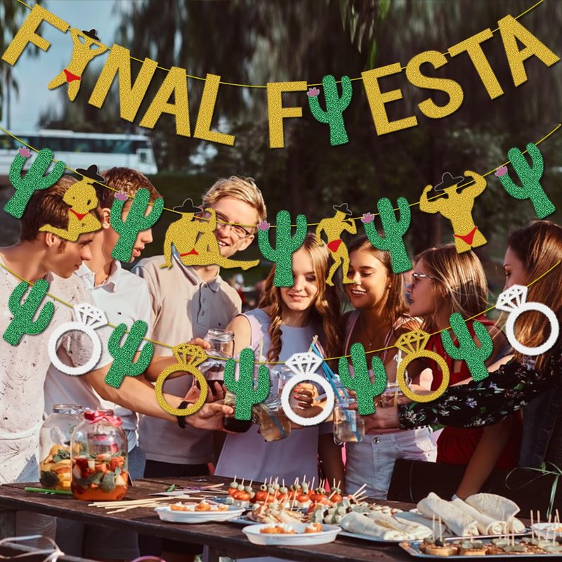 - What you will get: 3 strings Gold Glittery FINAL FIESTA banner with men cactus and rings sign.Need a little DIY