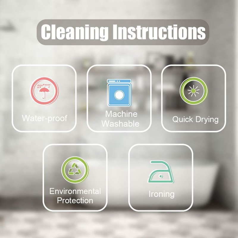 Keep Your Family Safe and Healthy with 100% Polyester Shower Curtain. [Product Information]: - Multi size selection: Shower Curtain 36W x 72H in; 60W x 72H in; 72W x 72H in; 72W x 80H in. - Includes 12 C-shaped Plastic Hooks. [Shower Curtain Description]: - Hotel quality cloth. - Waterproof. - Washable. - Eco-friendly. [Easy to Clean and Maintain]: - Machine Washable. - Wash Cold. - Do not Bleach. [Guarantee to Keep You Safe]: - If you have any issue upon receiving the item, please contact us immediately. We will respond as soon as possible and ensure that your issue is properly handled.