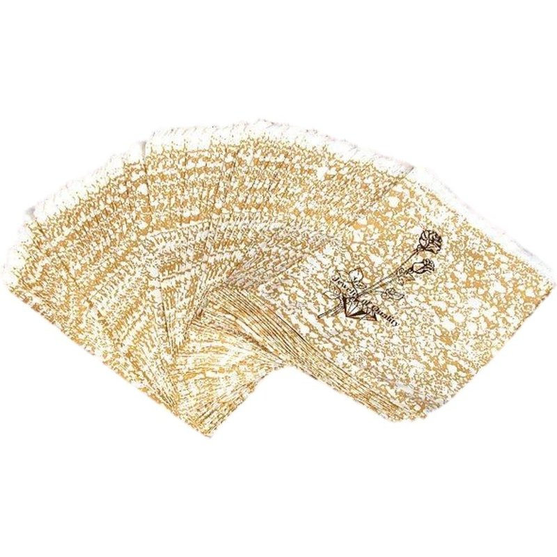 100 New Gold Tone Paper Gift Bags This is a new set of 100 gold tone printed paper merchandise bags With these bags it doesn't matter if the item is wrapped or unwrapped because they bring a touch of elegance to any item Each bag is printed with a rose and the words "Jewelry of Quality" Each measures approximately 5" x 7" (127 x 177 mm)