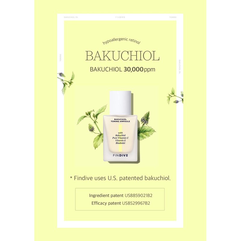 [FINDIVE OFFICIAL] Bakuchiol Toning Ampoule, 3% Bakuchiol, Plan-Based Retinal Alternative, Pure Vitamin C, Pure Vitamin E, Bisabolol, Brightning, Anti Wrinkle Serum, 1.01fl.oz