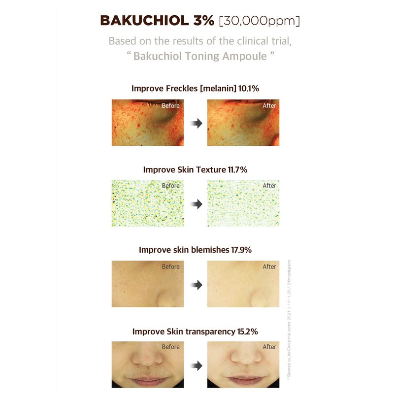 The Bakuchiol toning ampoule that provides healthy brightning skin with 3% [30,000ppm] of the active ingredient Bakuchiol from nature!