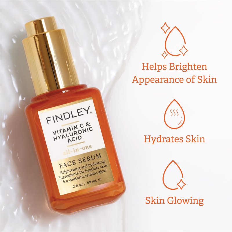 - FINDLEY ALL-IN-ONE FACE SERUM - VITAMIN C & HYALURONIC ACID (2 fl oz): Hydrating ingredients promote healthier skin and a youthful, radiant glow.
