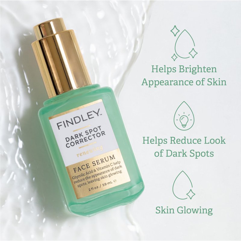 - FINDLEY DARK SPOT CORRECTOR RENEWING FACE SERUM - GLYCOLIC ACID & VITAMIN C (2 fl oz): Helps reduce the appearance of dark spots, leaving your skin glowing and radiant.