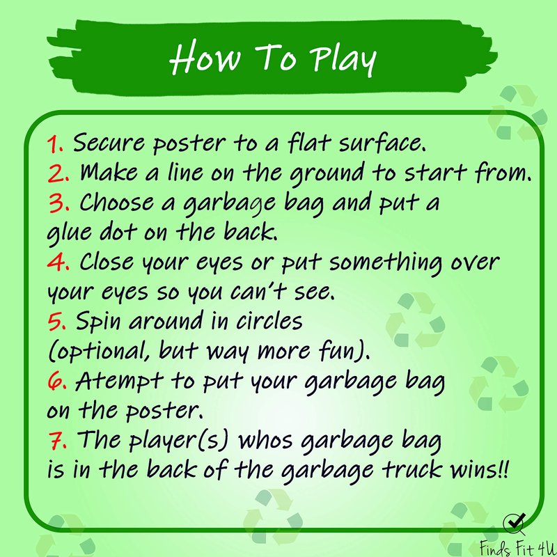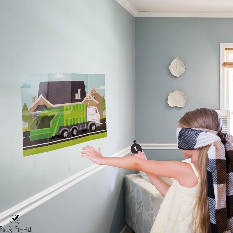 - ✔️Easy To Play: First, secure poster on a flat surface, make a line on ground as starting line. Second, choose a garbage bag, put a glue dot on the back. After that, close your eyes or wear blindfold(not included). Then, go ahead to pin the garbage bag on the back of the garbage truck. Finally, see who's bag is in the back of the garbage truck and you have a winner or winners.