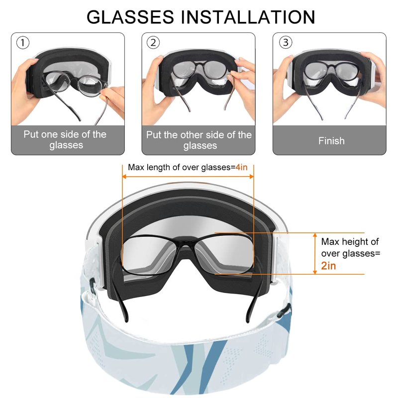 - OTG Friendly: This little kids snow goggles are with cut-outs in the frame so the goggles can fit over the glasses, make it convenient for the kids to wearing their glasses under the snow sport goggles