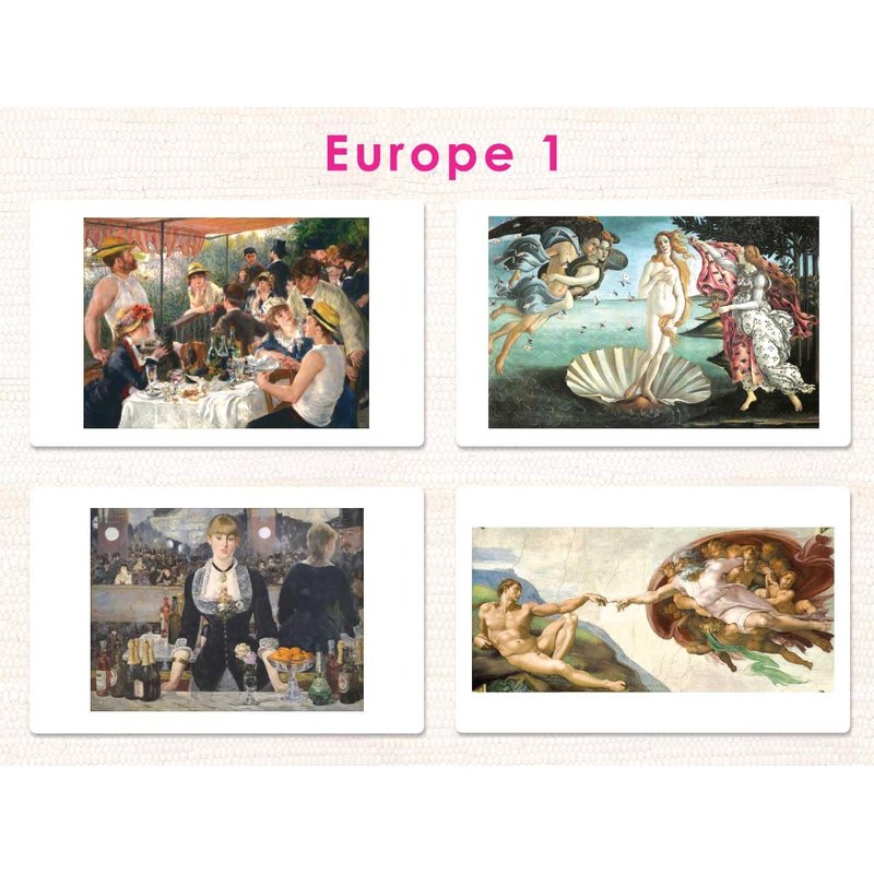 - Six famous pieces of art in each series/36 in the set
