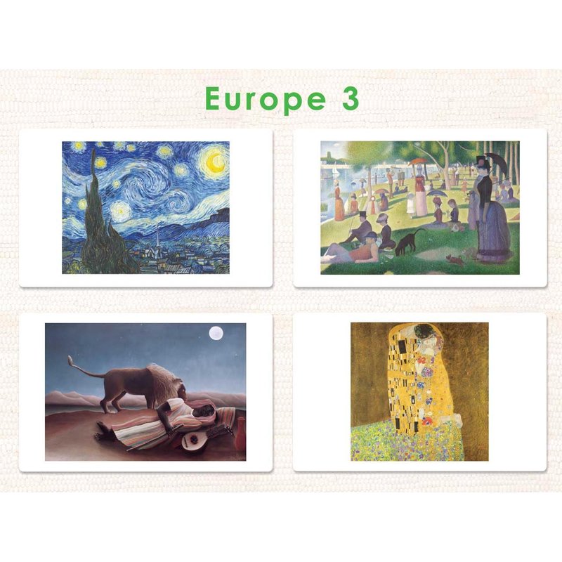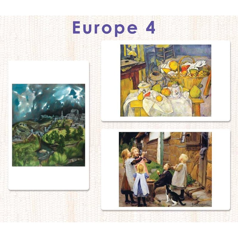 The breathtaking art in this collection includes some of the most famous works of art from Europe, the United States, and around the world. These are the Fine Art Folders they teach you about in Montessori training! Use these for the essential Montessori activities of artistic exploraiton, vocabulary building, and spoken expression.