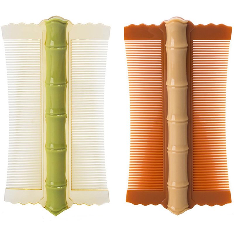 Introducing our exquisite Dual-Tone Scalp Care Comb Set: A Blend of Style & Efficiency Elevate your daily grooming routine with our elegant Dual-Tone Scalp Care Comb Set, a stylish addition to your personal care arsenal. Crafted with meticulous attention to detail, this set comprises two beautifully hued combs – a vibrant matcha green and a warm apricot shade, both designed to pamper your scalp and enhance your hair's overall health. Innovative Design for Enhanced Comfort Our combs feature a unique bamboo-inspired design that not only adds a touch of fun to your hair-combing experience but also ensures a secure and comfortable grip. Their compact size (12.5cm x 7cm) makes them the perfect travel companions, easily slipping into your pocket or makeup bag for on-the-go scalp rejuvenation. Precision Meets Gentleness Each comb in our set is a versatile tool, designed to cater to a range of styling and scalp care needs. The fine teeth of our combs act as a gentle yet effective dandruff comb, helping to eliminate flakes and promote a healthier scalp environment. Their precision construction ensures that even the finest hairs and delicate scalp areas are treated with utmost care. Double-Sided Brilliance Experience the dual benefits of our innovative double-sided design. One side boasts a scalp brush pattern, perfect for massaging the scalp and stimulating blood flow, which in turn promotes hair growth and relaxation. Flip it over, and you have a precision fine tooth comb ready to tackle dandruff and tangles, leaving your hair looking and feeling refreshed. Effortless Maintenance & Cleanliness Crafted from high-quality PP material, our combs are built to last while remaining lightweight and easy to clean. Their smooth surface resists the build-up of dirt and oils, ensuring that your comb remains hygienic and ready for use at all times. Simply rinse with warm water and mild soap for a quick and effortless clean. A Gift for All Occasions Whether you're treating yourself to a little self-care indulgence or searching for the perfect gift, our Dual-Tone Scalp Care Comb Set is an excellent choice. Suitable for everyday use, business trips, or special occasions, it's a thoughtful present that shows you care about the recipient's overall well-being. Embrace the luxury of a healthy scalp and stunning hair with our Dual-Tone Scalp Care Comb Set. Order now and elevate your grooming routine to new heights of style and efficiency.
