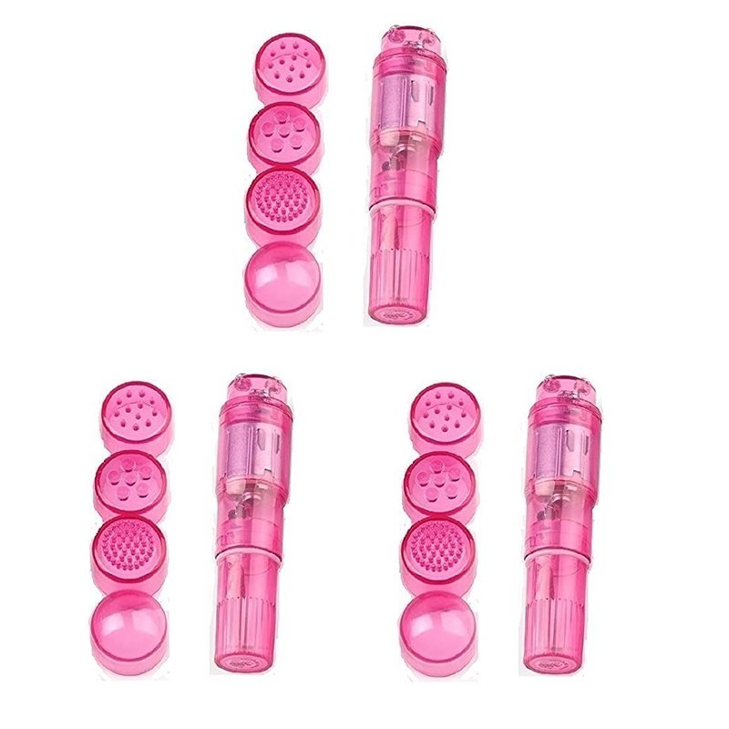 Finever Pocket Rocket Mini Beauty Facial Massager Relax 4 Heads Pink Color (3Pc)