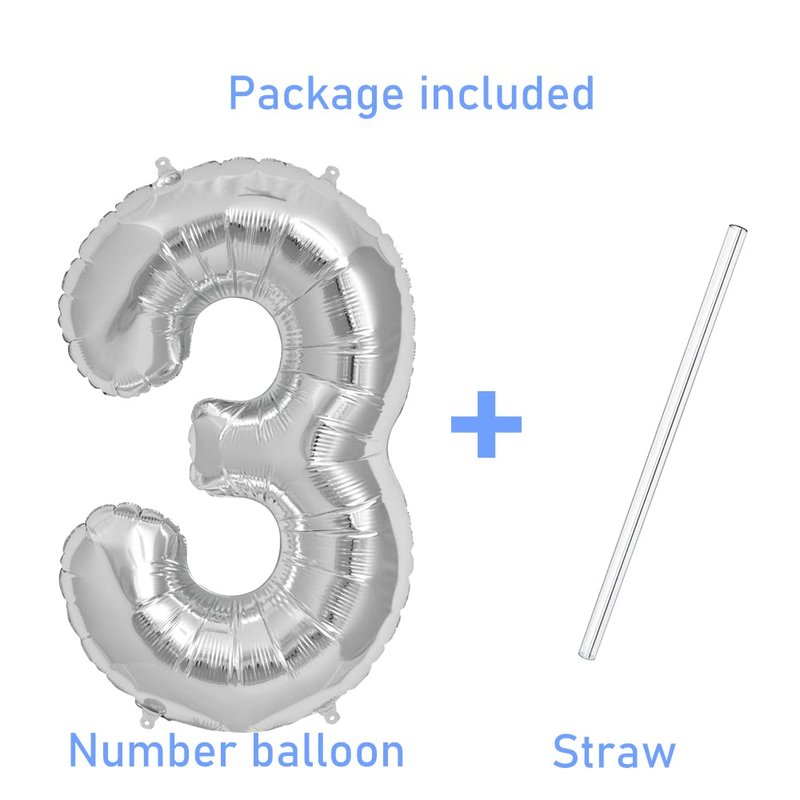 - 3 balloon, foil balloon, Reusable, use the straw to deflated balloons