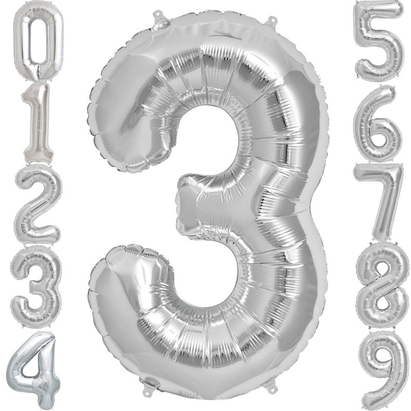- Number balloons, 3 balloon, number 3 balloon, silver 3 balloon
