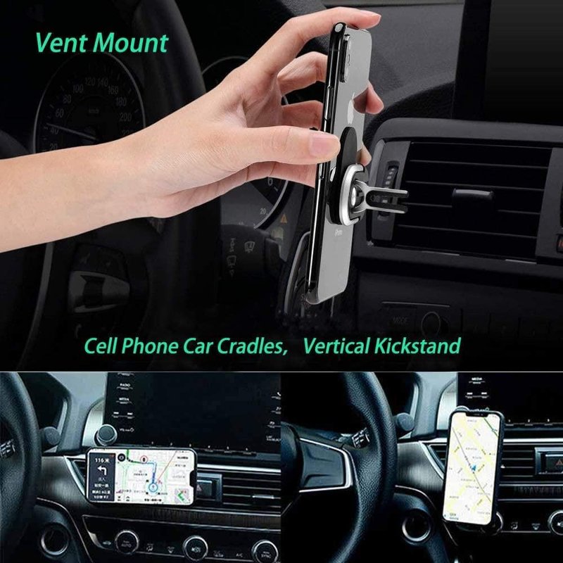 Designed with 360 degree Rotation and 90 degree Flip Folding. The mobile phone is horizontal/vertical freely rotating, flexible and adequate, which meets the requirements of different perspectives needs. This product will always ensure your smartphone is in your preferred location whenever you are talking, navigating, listening to music or watch movies. The Style Ring accessory provides extra grip and security in the hand for reduced risk of dropping your phone. Its versatile rotating and swiveling abilities offer a customizable fit to your hand as well as the ability to prop your phone as a kickstand. Improved One-Hand Usability, Drop-Free Grip in the Hand, Kickstand Ability. Zinc Alloy material does not change color and does not rust. Car Vent Cell Phone Holder:Adhesive can be firmly attached to the phone to prevent the phone from falling. Simple one-handed operating, easy to install on car vents in seconds. Safe driving:Handheld phone conversations and handheld GPS navigation (dangerous). Free your hands and make GPS and phone more convenient and protect yourself. Comes in Bulk Packaging (Non-Retail Package).