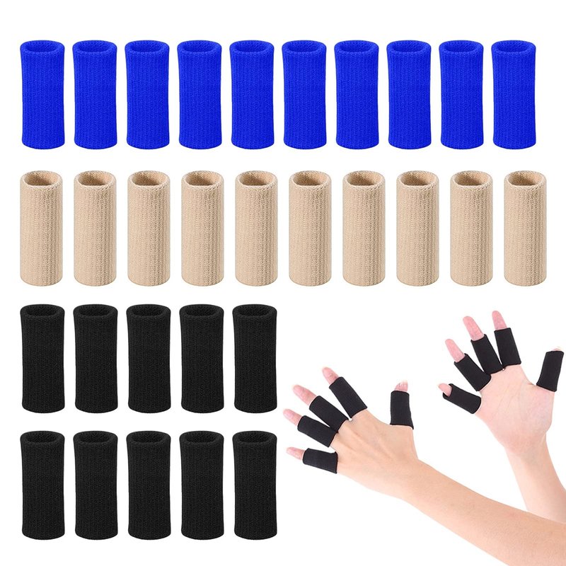 30PCS YHOUMEW Finger Compression Sleeves (10pcs black, 10pcs blue, 10pcs beige)