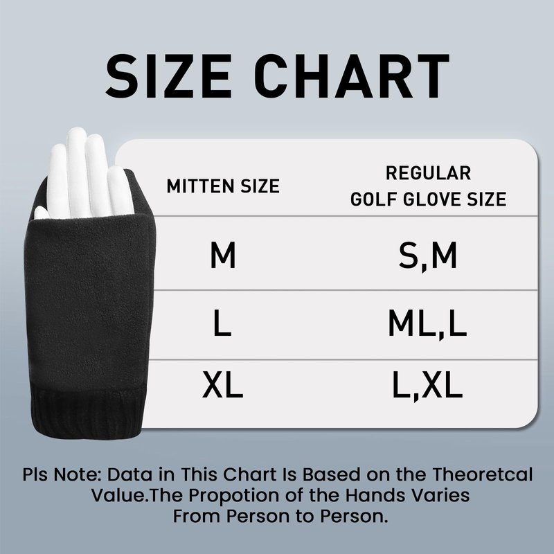 - Size: Medium Is for Normally Golf Gloves in Size Small/Medium; Large Is for Normally Golf Gloves in Size Medium/Large; X-Large Is for Normally Golf Gloves in Size Large/X-Large. Conveniently Slotted Fleece Mitts Fit Comfortably Over Your Regular Golf Gloves.