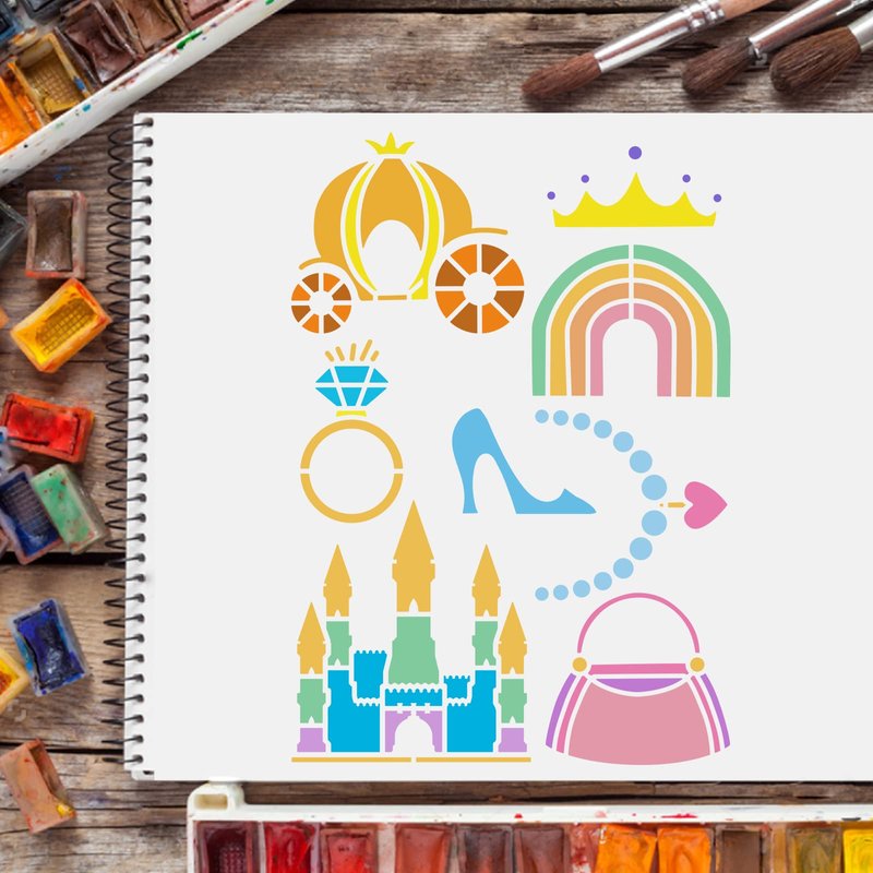 - 【Unique Pattern】 There are various types of patterns on the template, Single Horn Horse, castles, magic books, princesses, teddy bears, pumpkin cars, keys, bows, bags, magic hats, elves, moons, flowers, crowns, magic wands and more, suitable for in various creations.
