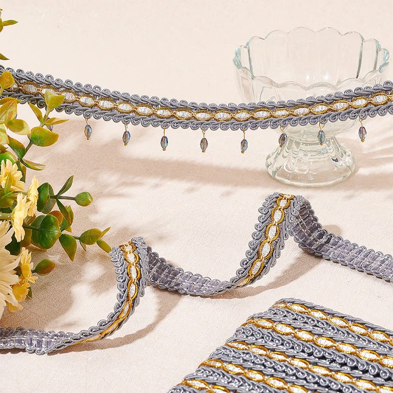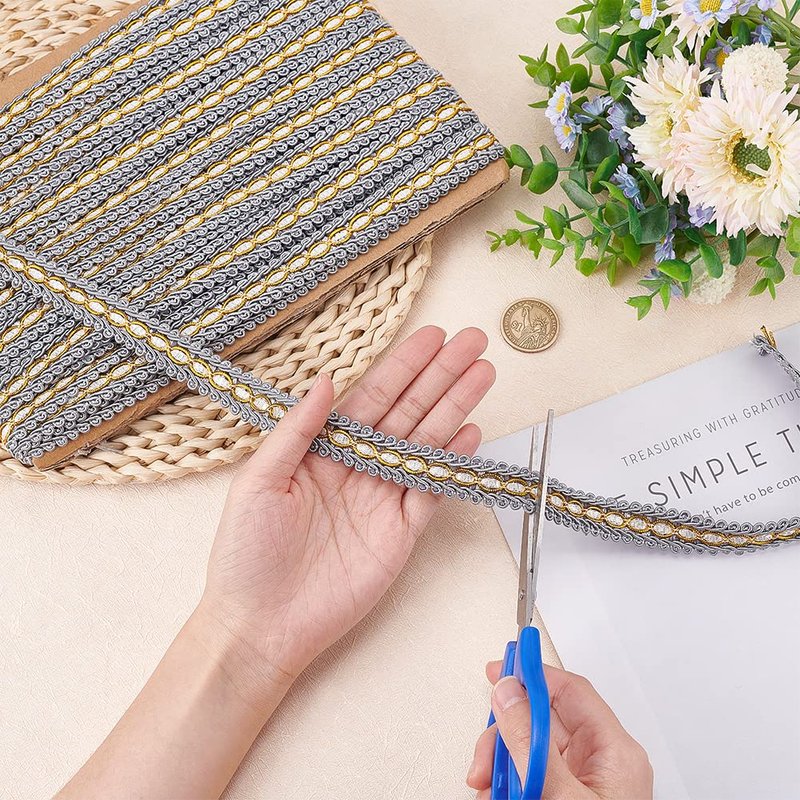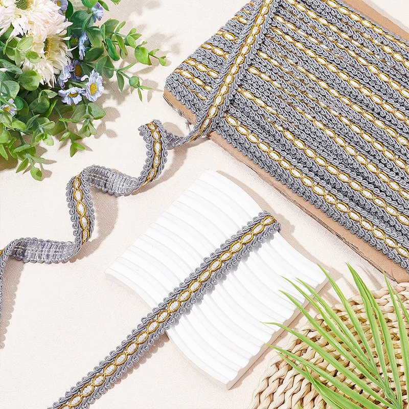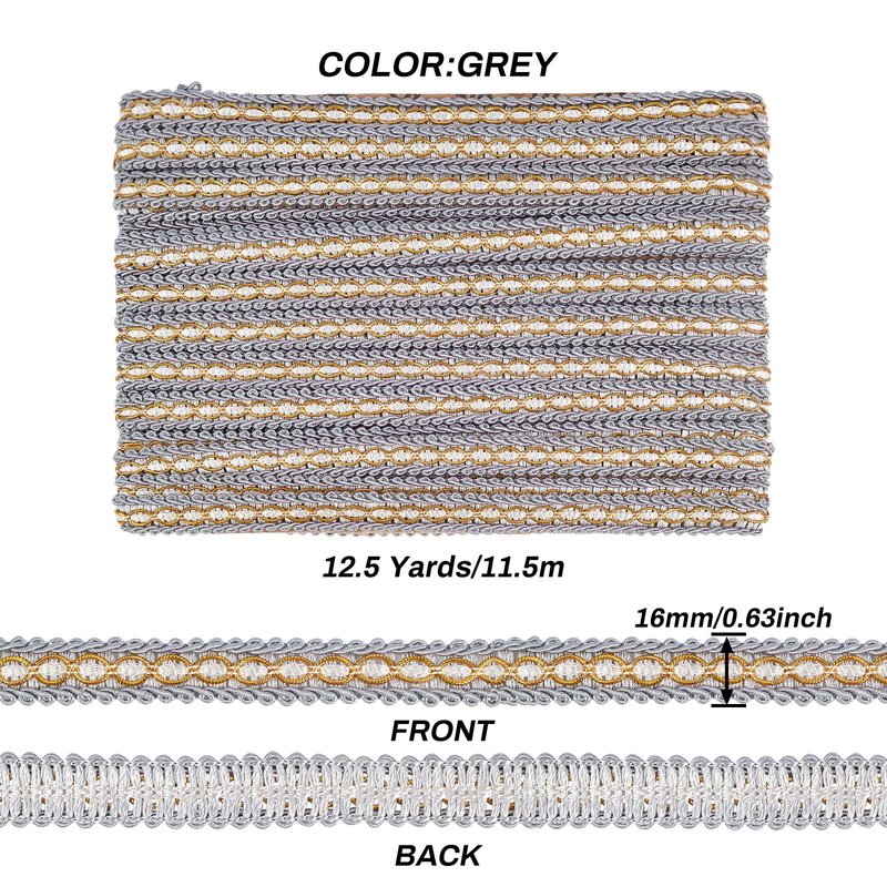 - [What You Get]: about 11.5m(12.5 yards)/card Gray gimp braid trim, Polyester Ribbon, Fringe Trimming, Costume Accessories.